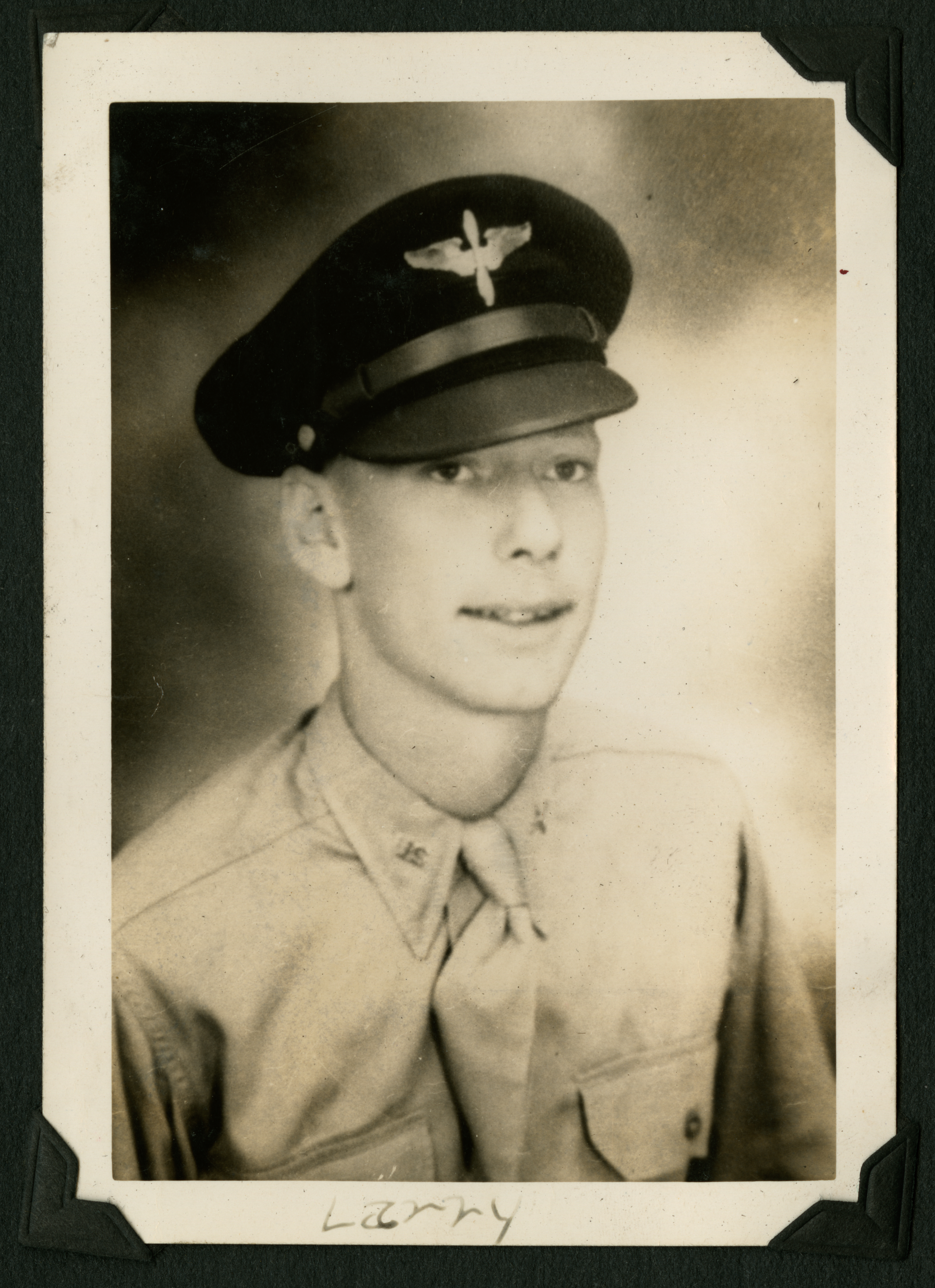 A young man in a naval uniform. The photograph is labeled "Larry."
