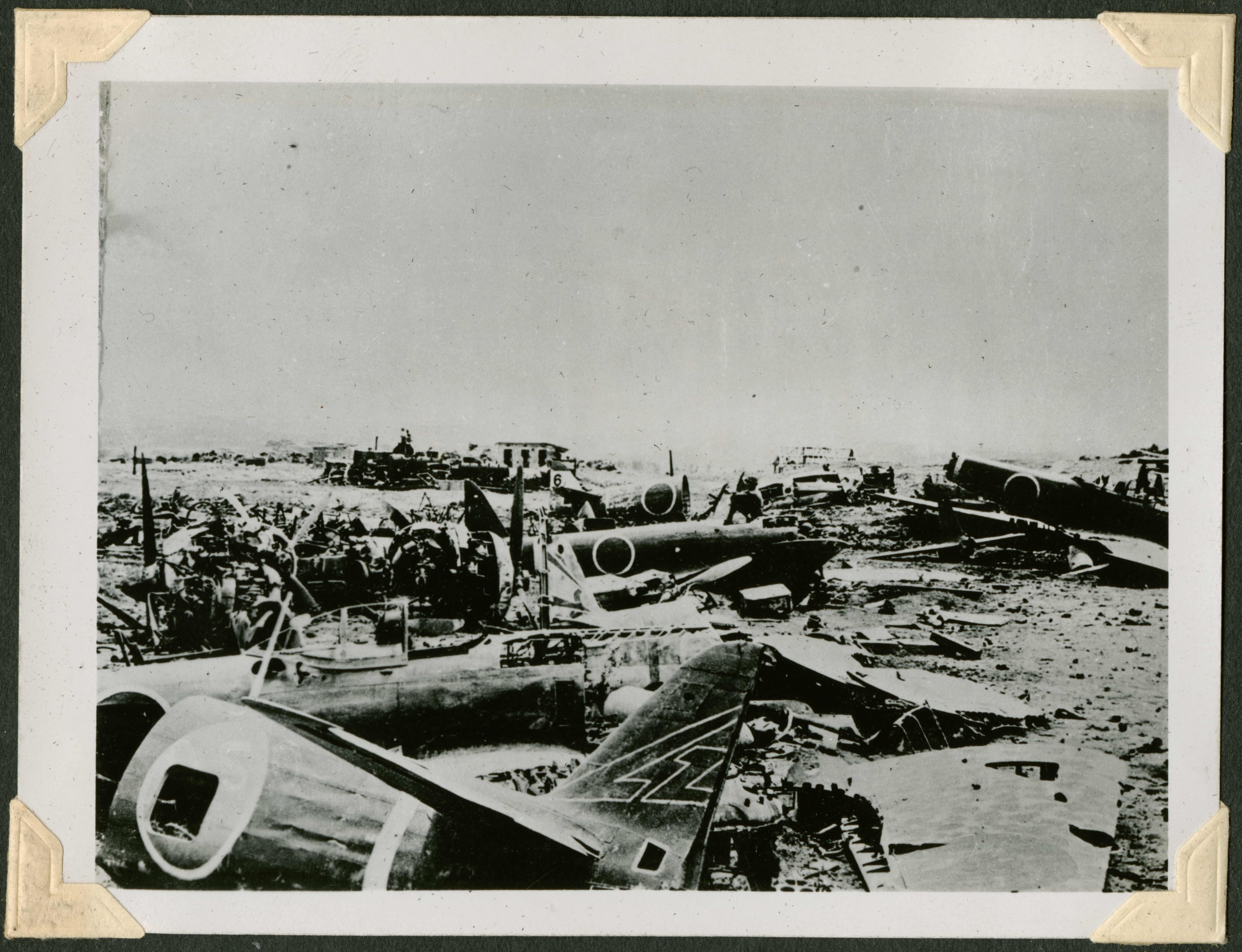 The image appears to be of a battlefield. There are various small planes resting throughout the image. 880 is printed in black ink on the back of the photograph.