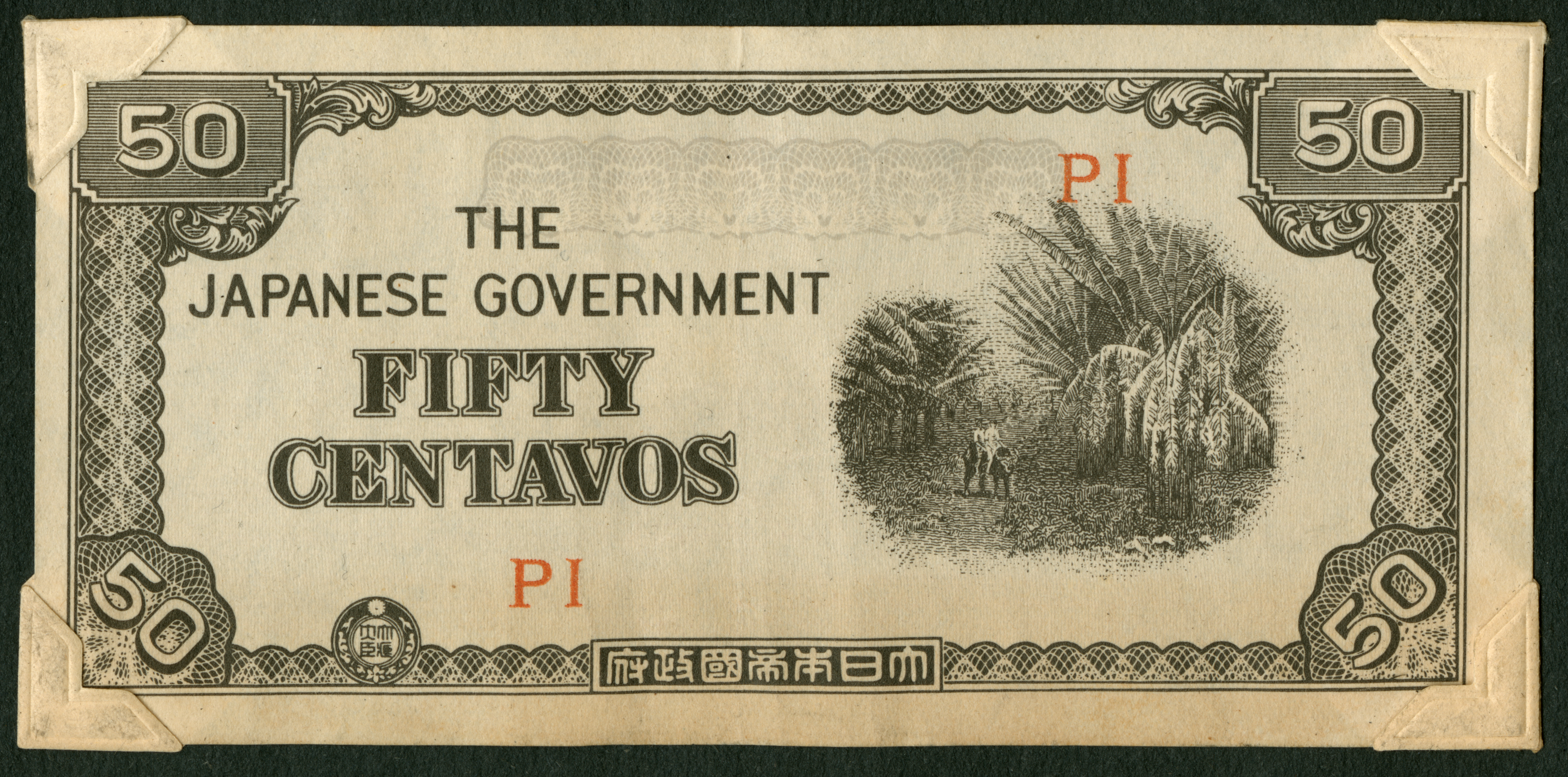A bill for fifty centavos issued by the Japanese government during the occupation of the Philippines.